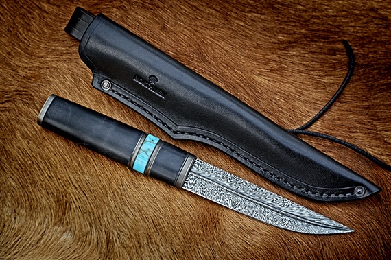 Handle material: Stabilized Flame Birch, Antique Nickelsilver, Trustone Arizona Turquoise
