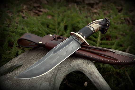 Handle materials: Antique Bronze, Elk Antler, Leather