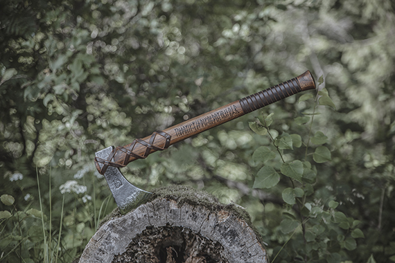 • Damascus Woodsman Axe. Bog Oak 5600 yrs.