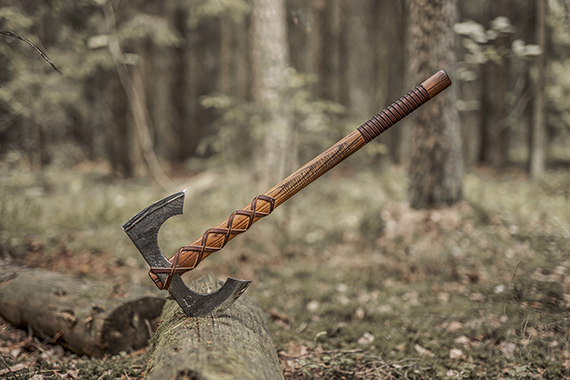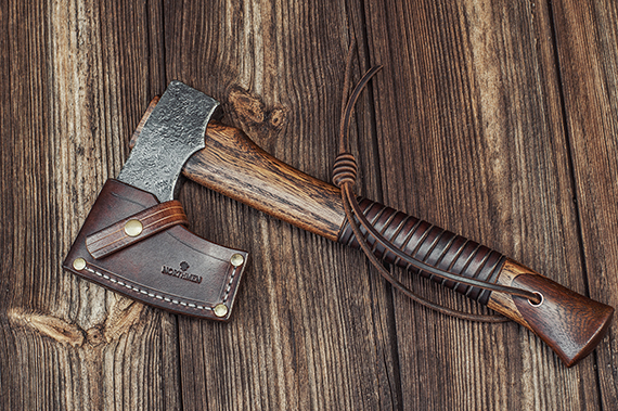 Handle material: Turkish Walnut Burl, Moose Antler, Leather, Antique Bronze.