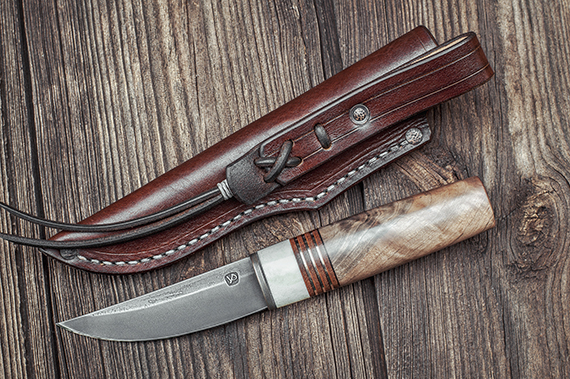 Handle material: Stabilized Black Alder, Moose Antler, Antique Bronze, Leather