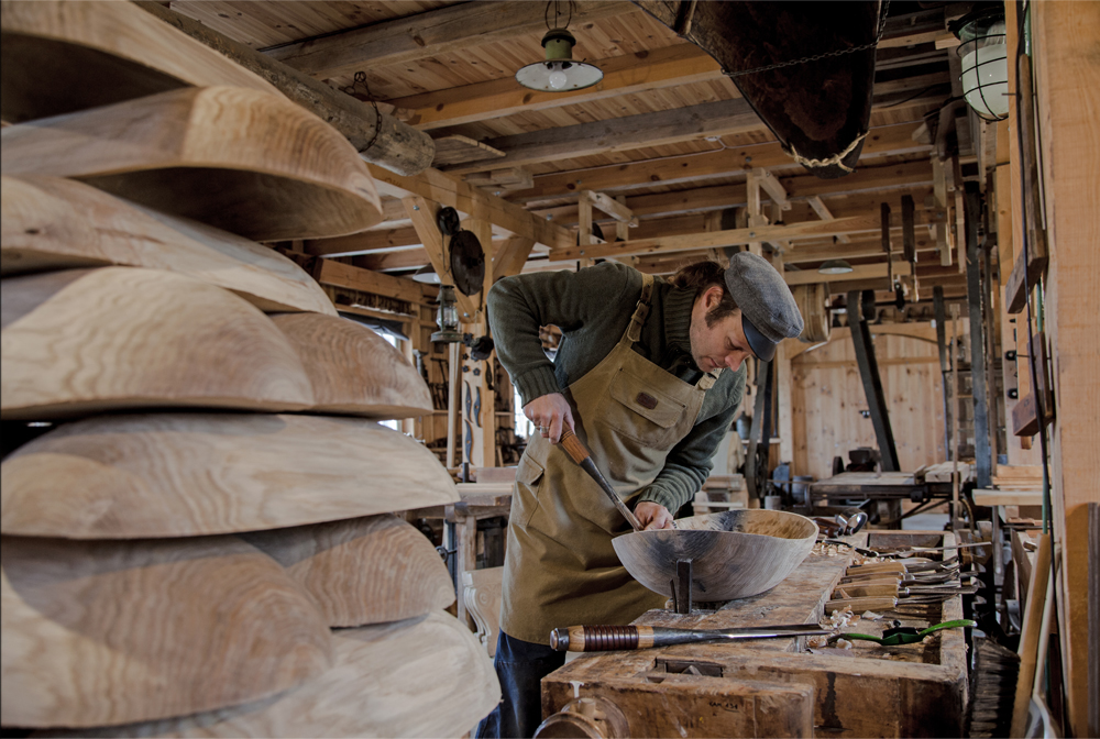 • Making smaller wooden bowls from birch and white oak logs.