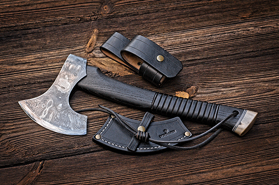 Damascus Woodsman Axe. Bog Oak 5600 yrs.