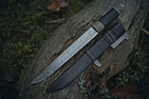 Scabbard materials: Bog oak, Sterling Silver, Leather, Moose Antler