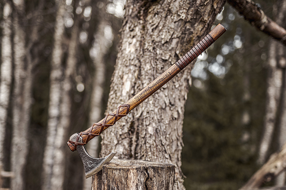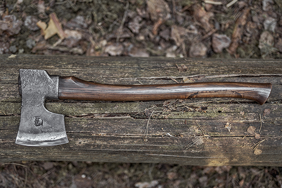 Handle material: Turkish Walnut Burl, Moose Antler, Leather, Antique Bronze.