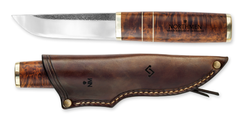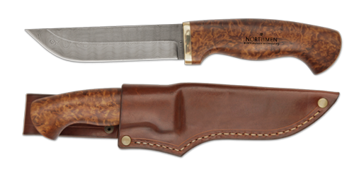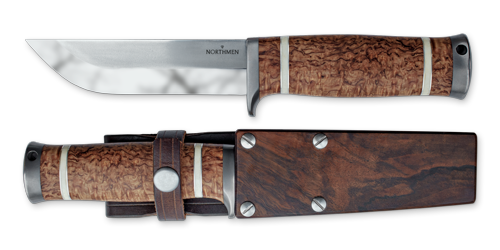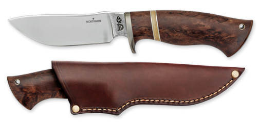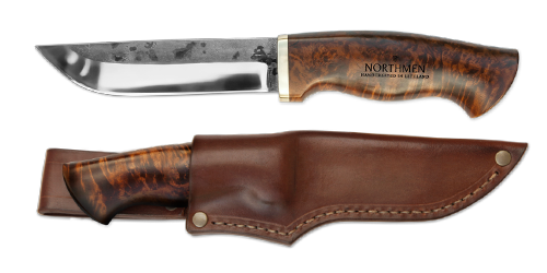 Camel bone, Sterling Silver and Lapland's curly birch handle, Titanium guard.
