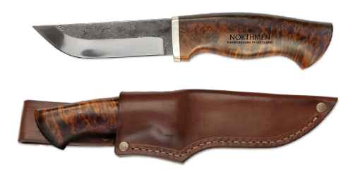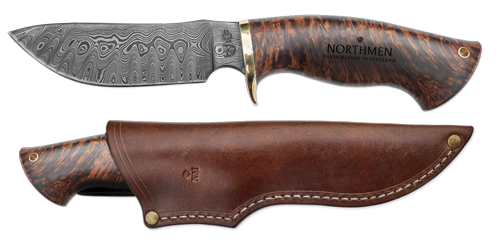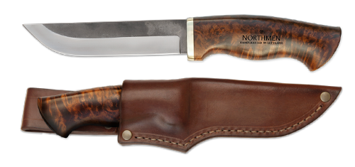 Sheath: Saddle stitched 4mm thick leather in Walnut brown colour.